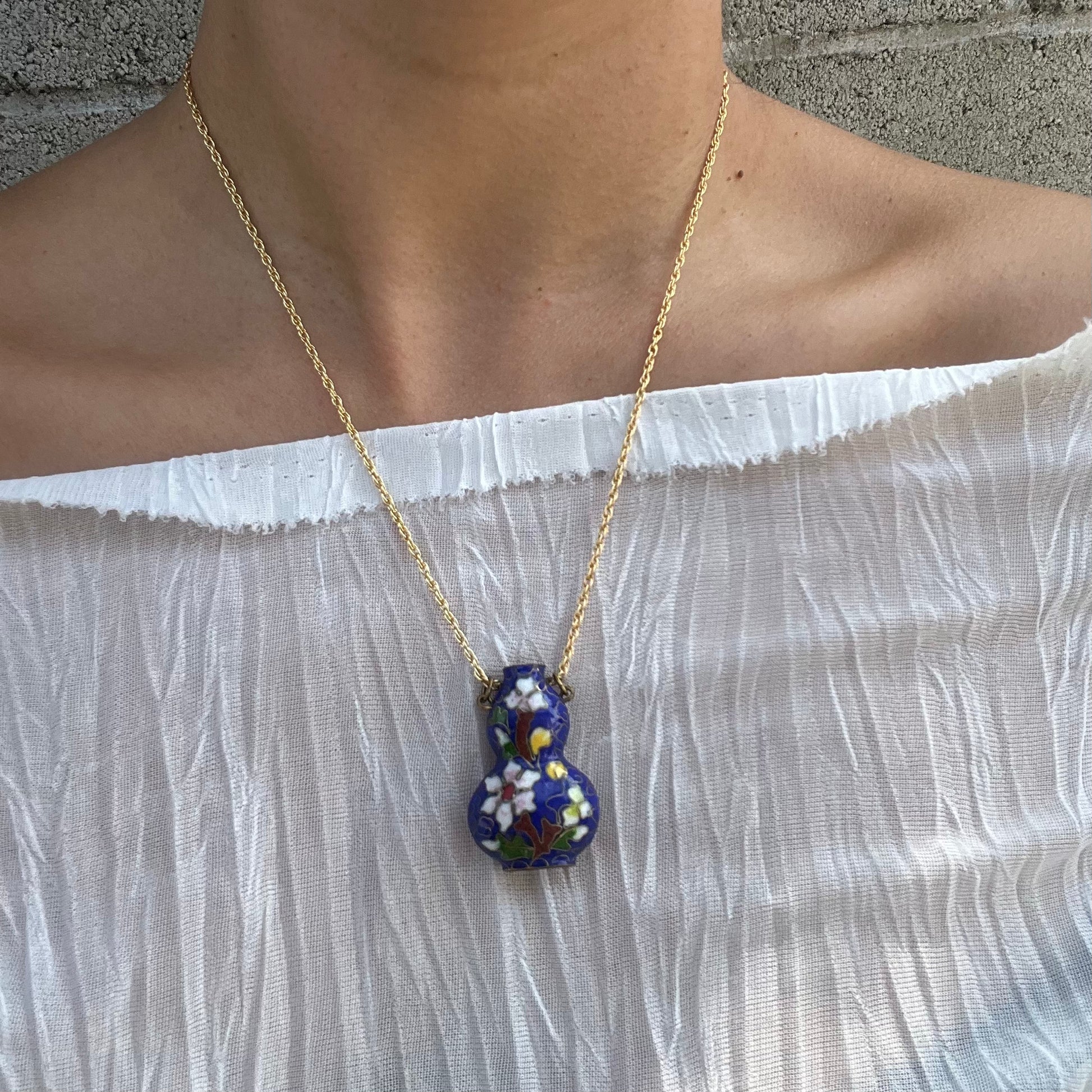 - Cloisonné Enamel Chinese Inspired Pottery Pendant